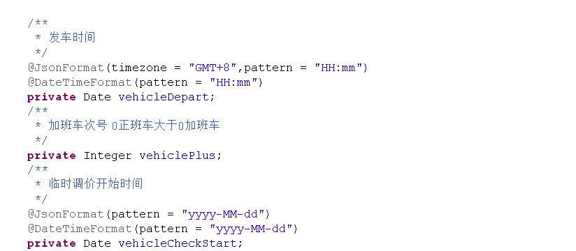 - 时间类型要在属性之上添加@DateTimeFormat(pattern = "yyyy-MM-dd HH:mm:ss")和 @JsonFormat(timezone = "GMT+8",pattern = "yyyy-MM-dd HH:mm:ss")注解。