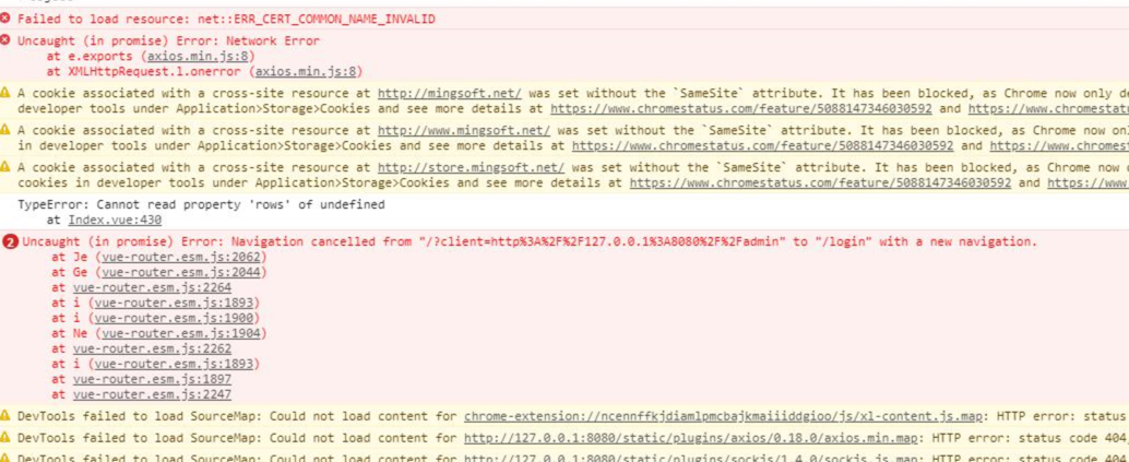 Chrome升级到80版本后,默认限制了cross-site携带cookie,导致cookie失效,报错如下