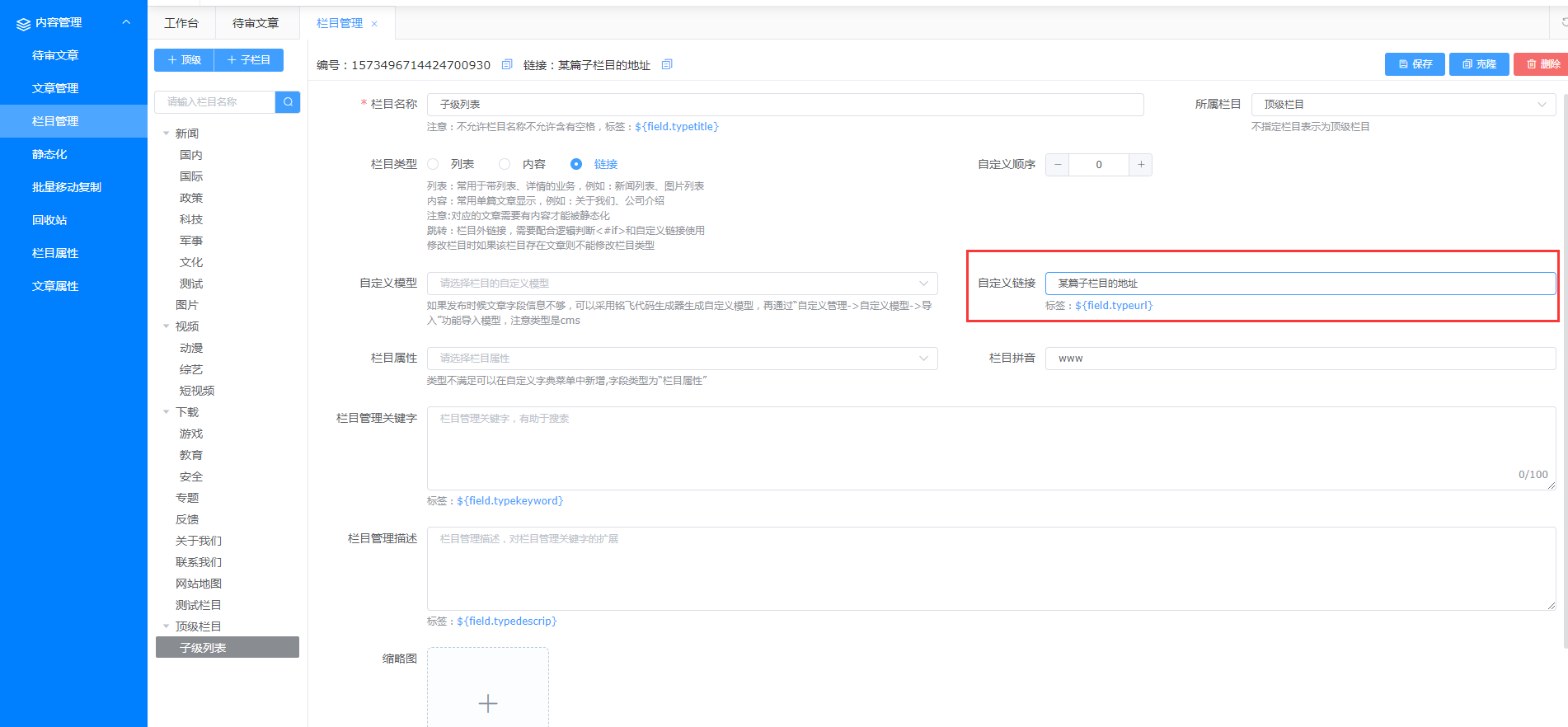- 【优化】栏目管理功能优化