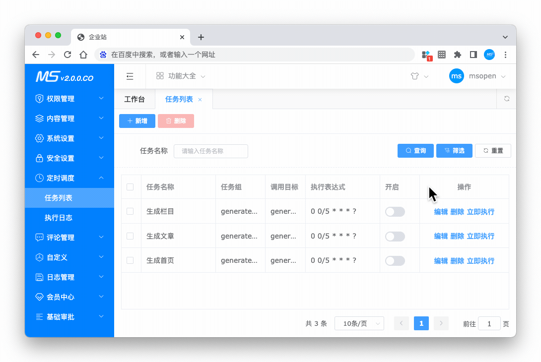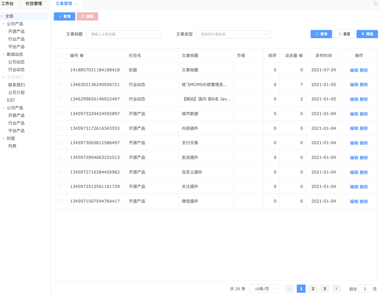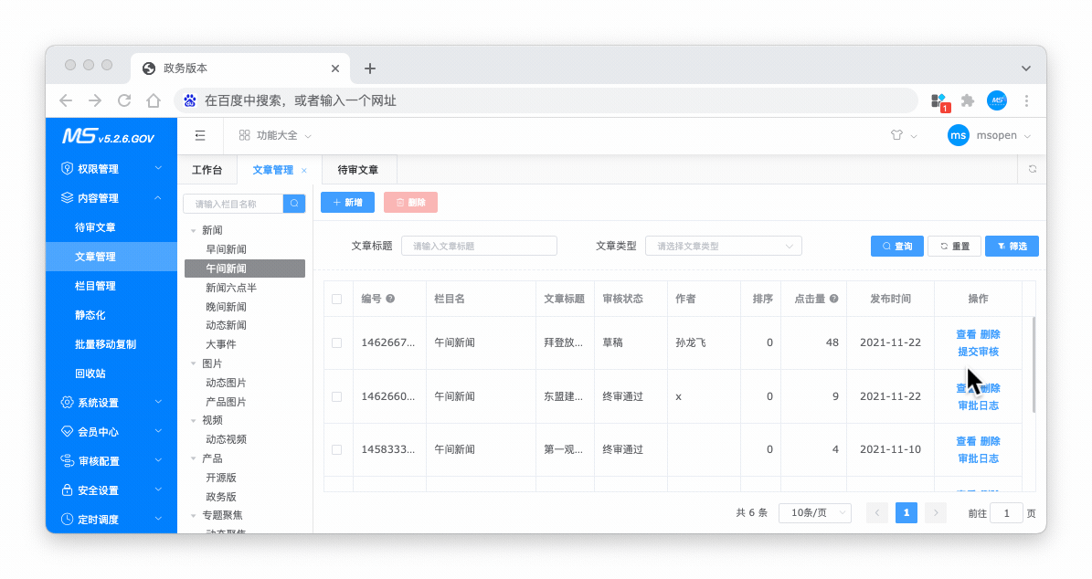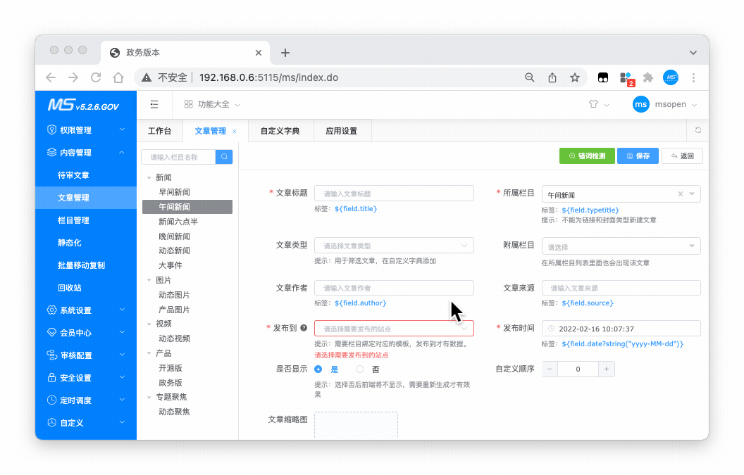 MCms内容插件提供最基本的菜单、权限、角色、栏目、内容、静态化、等常用的功能,能够帮助企业或个人进行快速建站。