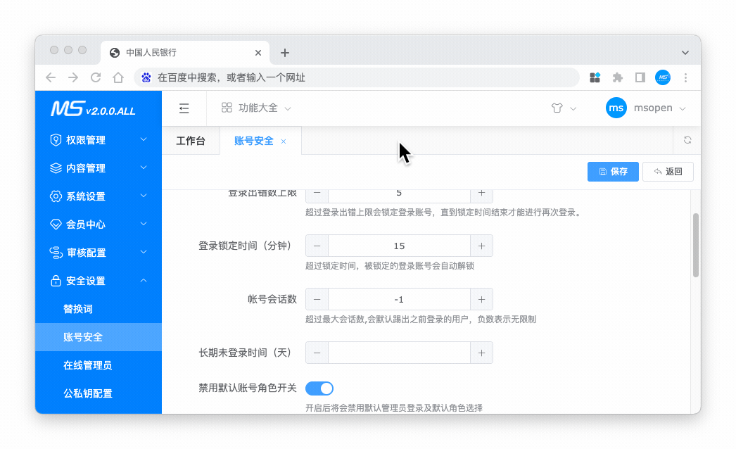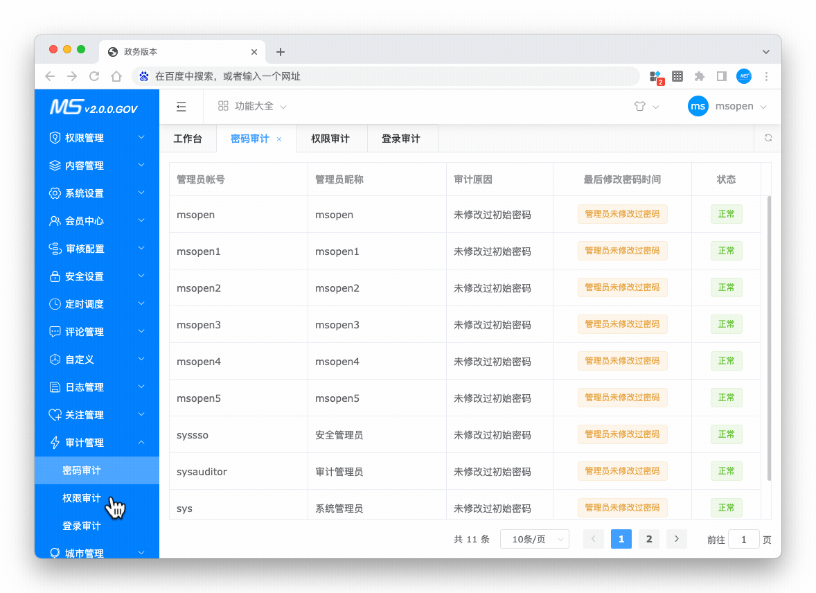 默认集成三员管理权限控制