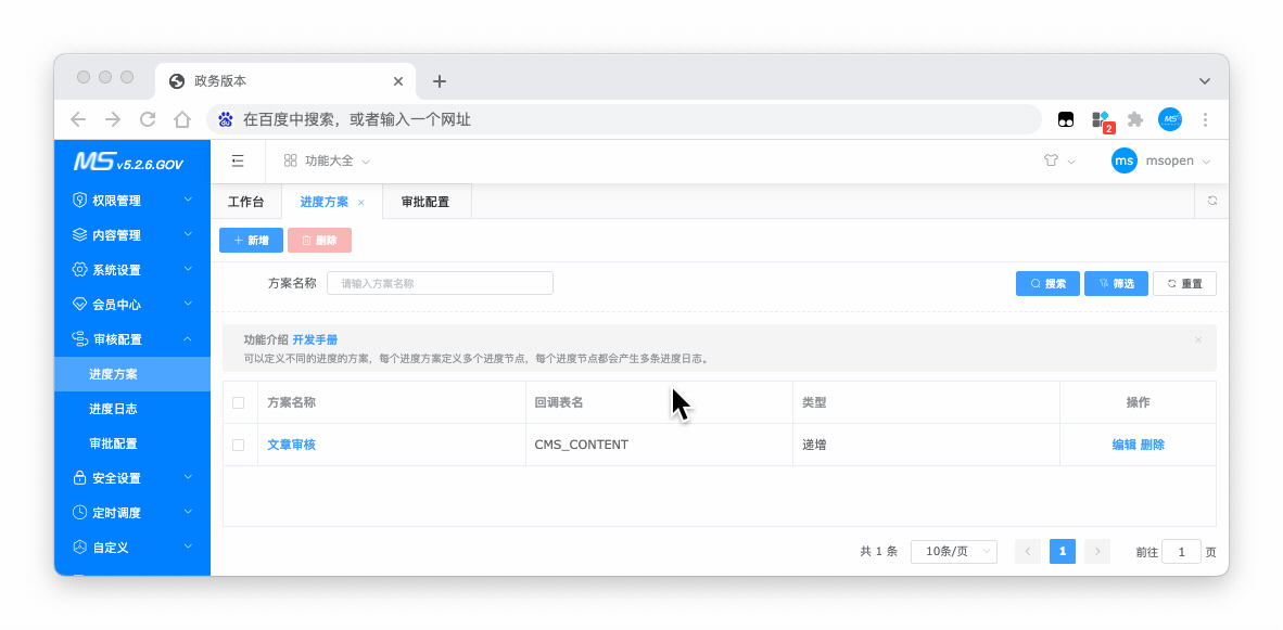 政务版本具备企业版本的基本功能,同时针对政府部门的特性增加更多的特色功能