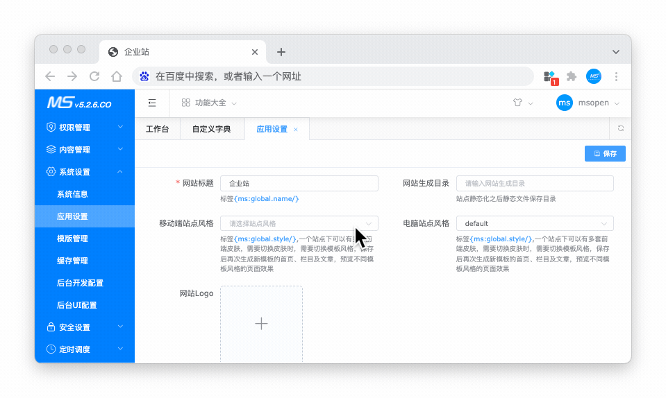 1、快速帮助企业搭建门户网站;