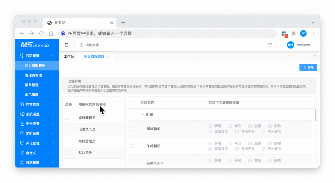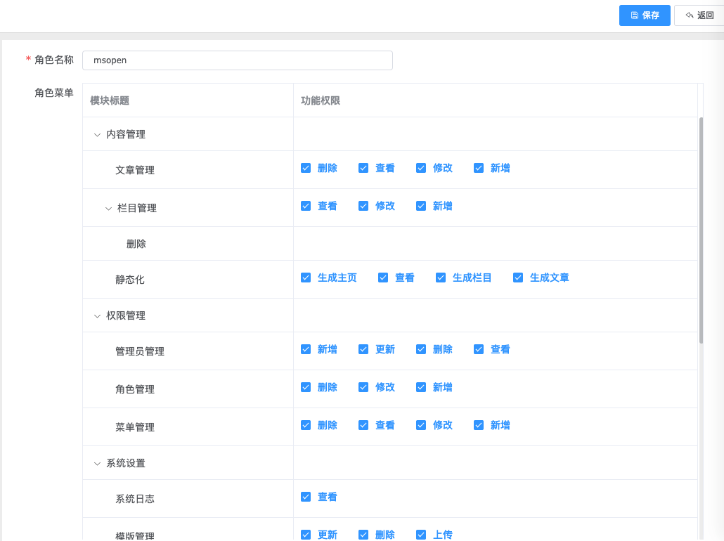 根据角色设置栏目权限
