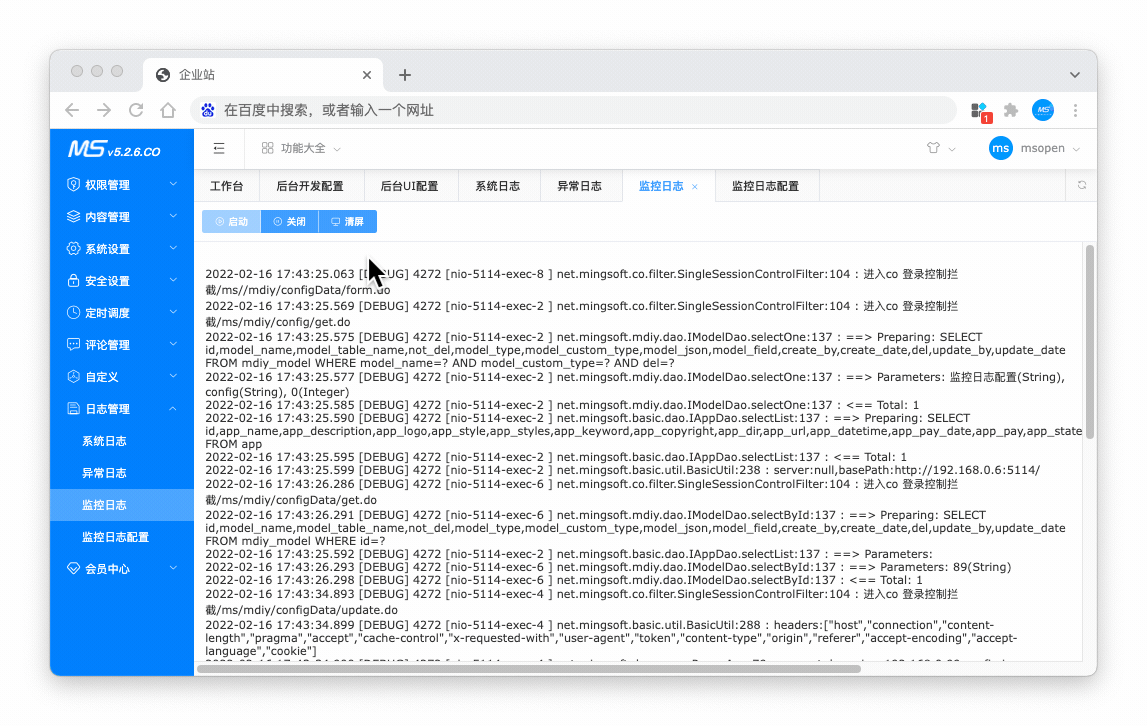 在线实时监控日志,省去进入系统手动查看日志,维护系统更方便