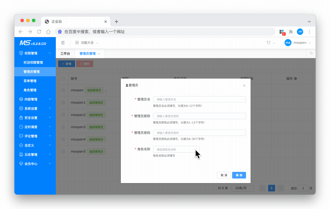 管理员支持多角色