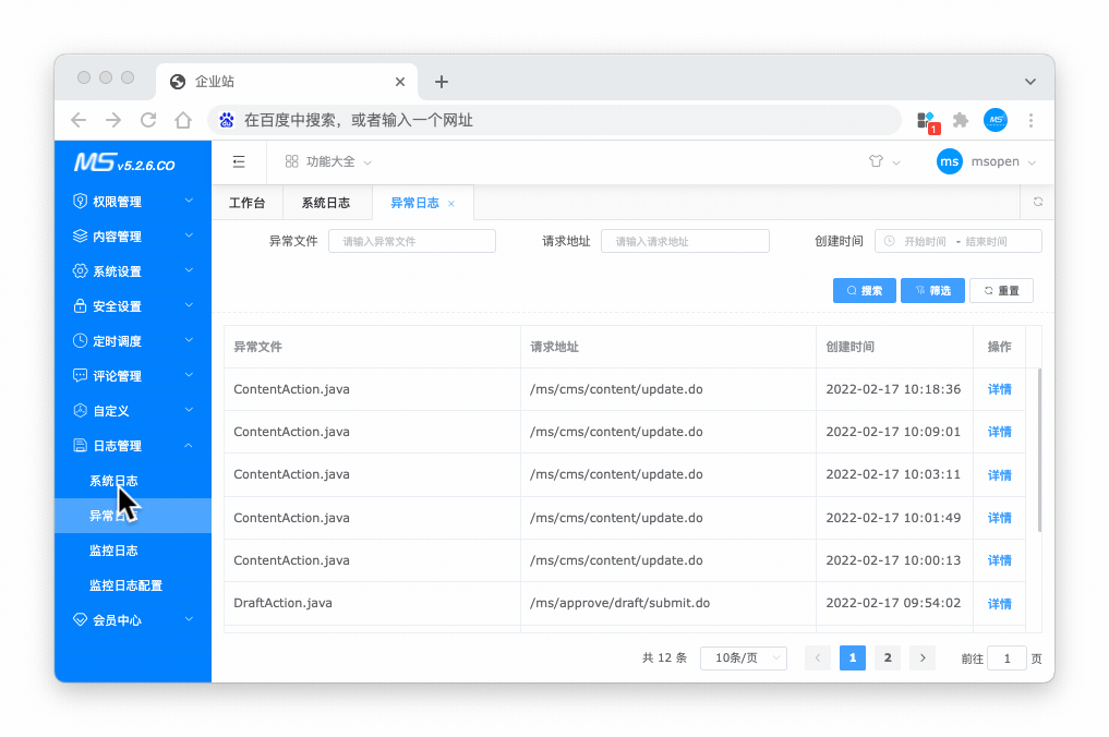 系统日志、异常日志