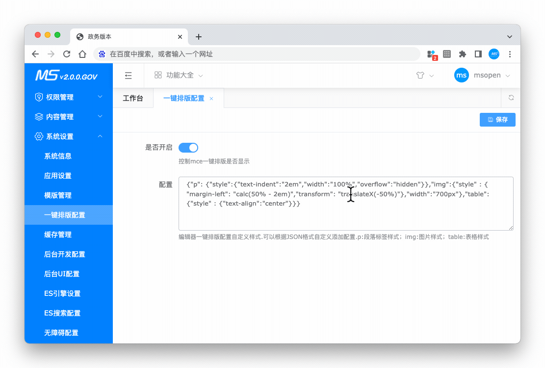一键排版设置