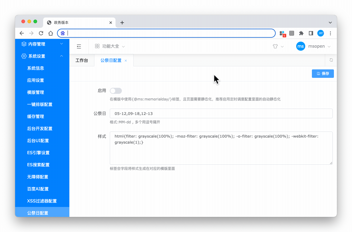 可以根据配置的公祭日日期页面会灰度展示