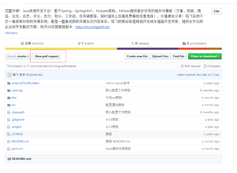 github上的代码提交和同步与开源中国有所不同。在github中,代码的提交与同步都是依赖pull request来操作的。比如现在需要提交代码的话,需要新建一个请求。将贡献的代码提交上github;