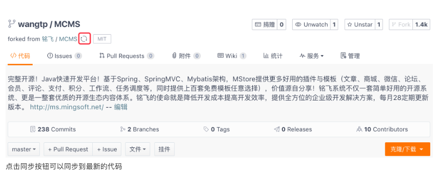 点击同步按钮可以同步到最新的代码