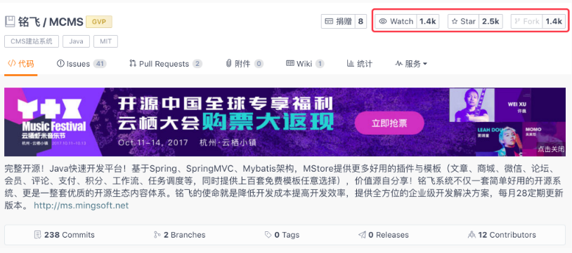 和开源中国一样。项目的右上角三个按钮,分别是 watch、star、fork,具体的功能请参照开源中国的关注;