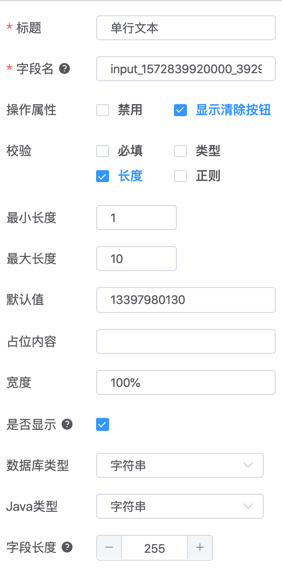 主要控制四个方面(页面显示控制、表字段控制、java代码控制、验证提示控制),注意:建议标题、字段名根据实际业务进行修改