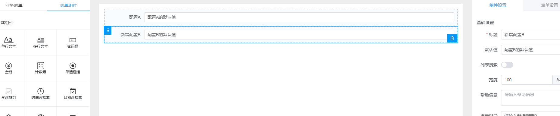 注意,在更新模型时,即使新增加的表单项有默认值,在配置模型已经新增产生数据的情况下,新增加的字段不会显示默认值,需要手动赋值