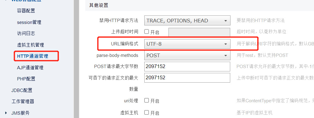需要在 HTTP通道管理 中设置URL编码格式为UTF-8
