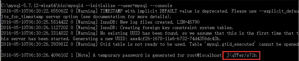 该命令会创建data目录与数据库,生成root用户和临时密码,如下图